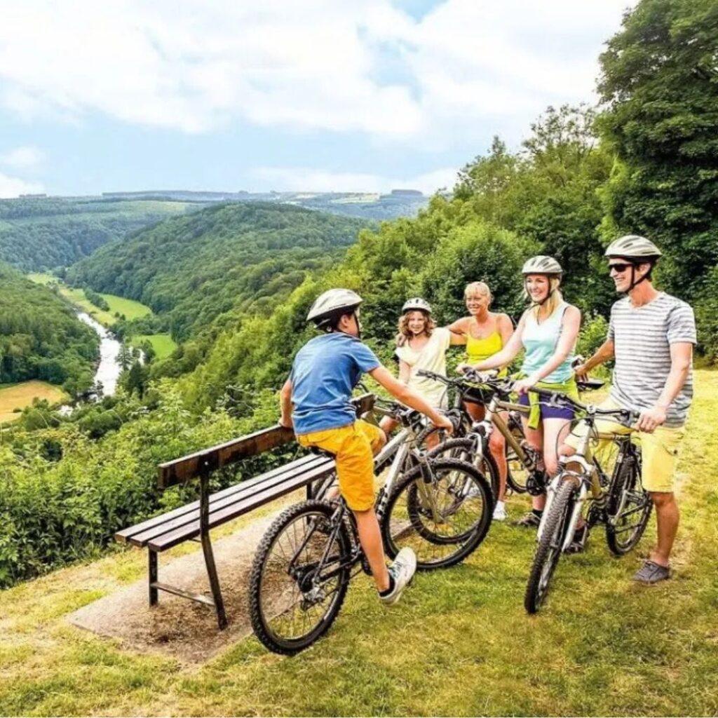 Après la visite des grottes dans la matinée, nous voilà désormais au pied du massif de l’Ardenne. Une ravel (ancienne voie ferrée transformée en voie verte) nous permet de prendre de l’altitude tout en douceur. Une vaste faille vient tout à coup entailler profondément le massif ardennais : voici la vallée de la Semois. Le belvédère du Tombeau du Géant vient témoigner de son parcours sinueux et révèle ainsi une vue magnifique sur un de ses plus grands méandres.